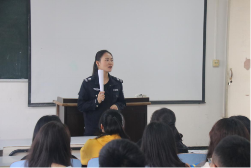 10月11日下午两点,银晖派出所的黄茜茜警官在文学院2-303教室为汉语言文学专业1班2班新同学作网络安全教育讲座。