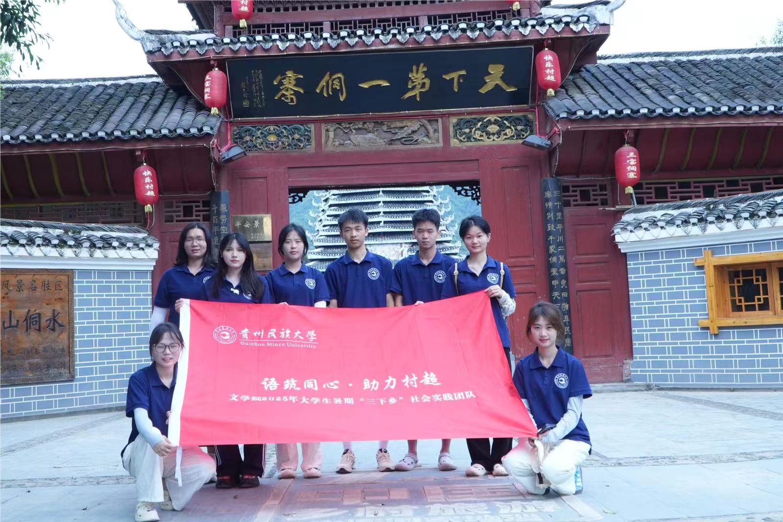 7月20日,贵州民族大学“语筑同心•助力村超”团队于黔东南苗族侗族自治州榕江县赴“天下第一侗寨”三宝侗寨开展实地调研。