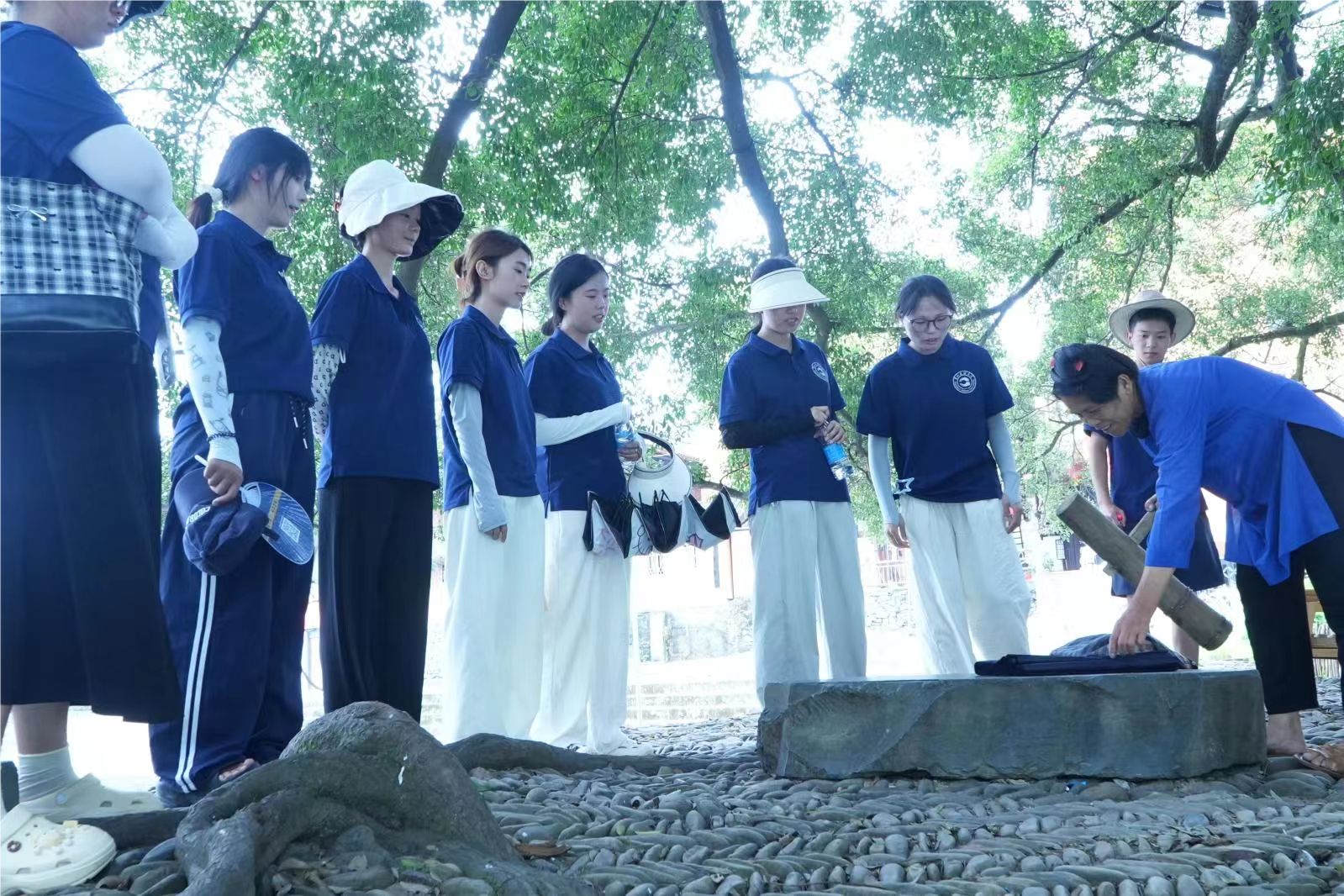 团队实地走访了解侗族地区国家通用语言文字使用情况,并实地观察当地妇女捶制侗布的传统工艺,就侗布制作流程与从业者进行交流。随后,团队前往中国侗语标准音所在地章鲁村,沉浸式体验当地风土人情,为民族文化研究收集了鲜活素材。