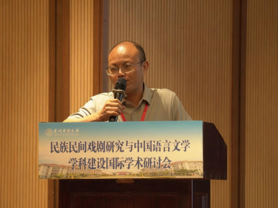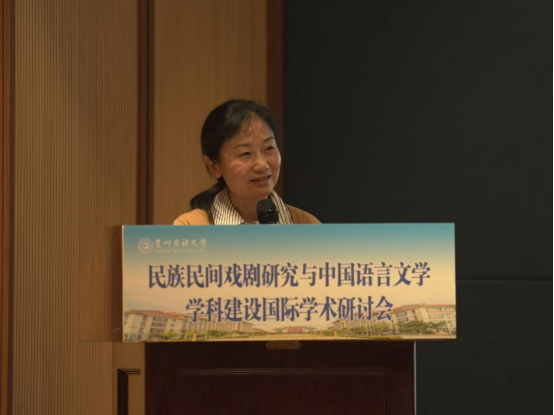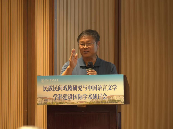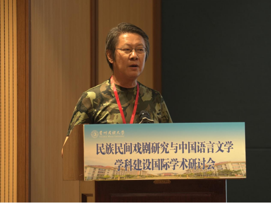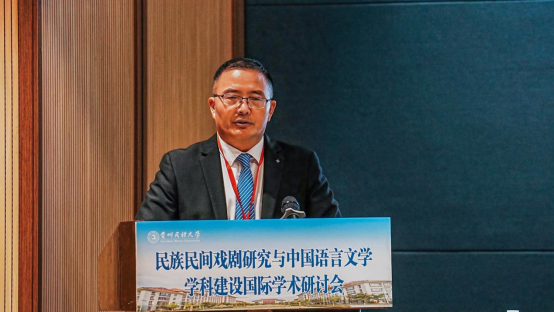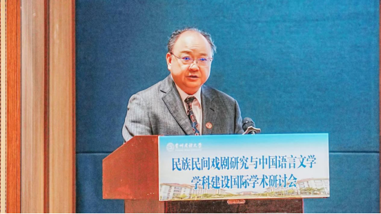 吴一文在致辞中对国内外与会专家表示热烈的欢迎,介绍学校基本情况并指出,贵州民族大学是民族地区人才培养培训基地、科技研发基地、民族优秀文化传承创新基地、民族团结进步示范基地和民族地区经济社会发展重要智库。贵州有黔剧、傩戏、布依戏等丰富的民族民间戏剧资源,学校始终坚持深耕民族文化传承研究,高度重视民族文化、语言文学、民间艺术相关学科专业的建设发展。本次研讨会各位专家学者的交流与碰撞必将会为民族民间戏剧的研究与中国语言文学学科的发展注入新的活力,共同推进中国语言文学学科的蓬勃发展。