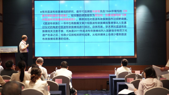 当日下午,研讨会设两组分别于红枫厅、西江厅同时进行。红枫厅会场以“民族戏剧与中华民族共同体意识”为主题;西江厅以“民族戏剧与传统戏曲研究”为主题,来自全国各地的专家学者围绕主题进行学术汇报,为与会者呈现一场启发深刻的学术和思想盛宴。