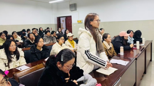 讲座过程中,王雪松教授就讲座话题与学生互动,同学们积极参与,效果良好。在讲座提问环节,有学生就“哲理诗中的情绪节奏问题”“考研选择”等问题与王雪松教授进行了深入交流。