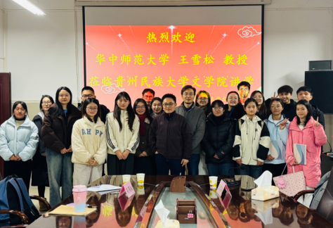2025年12月5日晚,由贵州民族大学文学院主办的“学术前沿讲座第49讲·生理基础与中国新诗文体建构”在北校区文学院508会议室顺利举行。本次讲座特邀华中师范大学王雪松教授主讲,由文学院高周权副教授主持,文学院部分教师、研究生及本科生参加。
