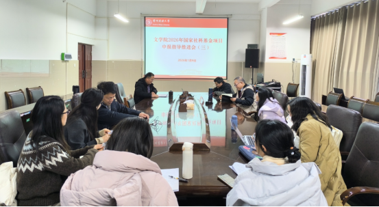 文学院为进一步推进2026年国家社科基金项目申报工作的开展,提高项目申报质量。按照学校和科研处相关要求,于2026年1月9日,邀请贵州大学杨军昌教授在文学院508会议室召开了2026年国家社科基金项目申报第三轮推进会,参会老师15人。